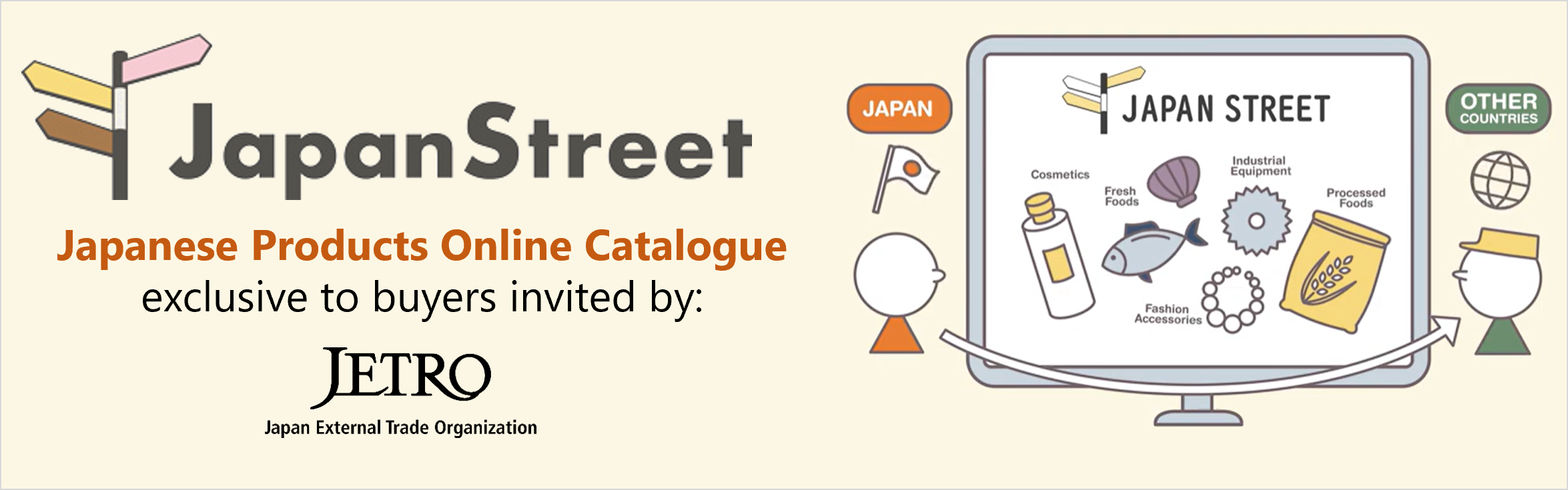 Japan Street is an online catalog site that can be viewed only by a limited number of overseas buyers who are invited by JETRO. Once you become a member, you can search finest Japanese products anytime anywhere!