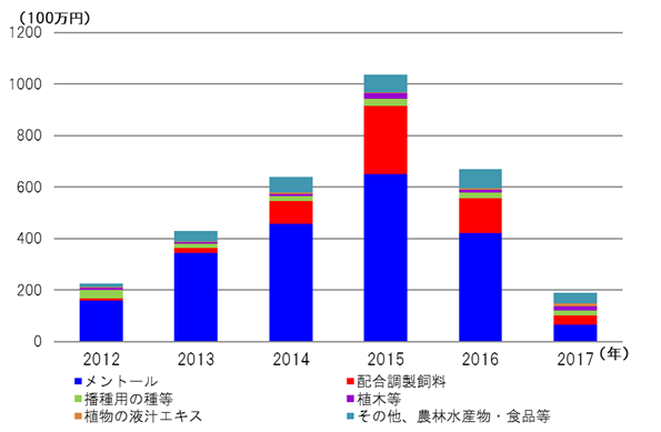 (出所)農林水産省二国間貿易実績よりジェトロ作成