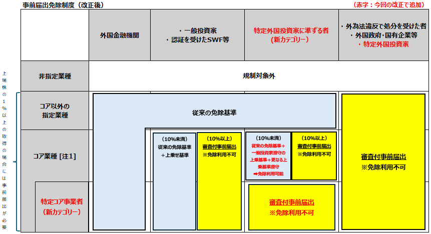 上場株の場合と同様、今回の改正により、特定外国投資家を事前届出が義務付けられるカテゴリーに追加。