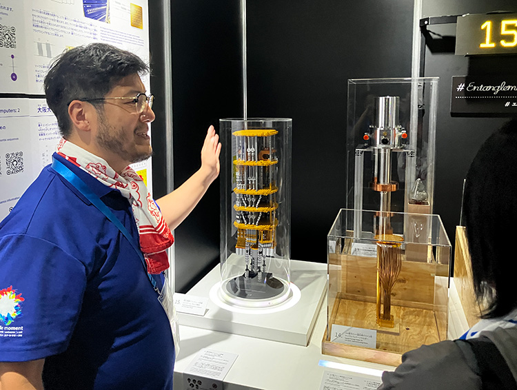 大阪・関西万博にて来場者に量子コンピューターを説明する根来教授
