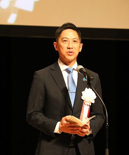 サミットで挨拶する鈴木健太・秋田県知事