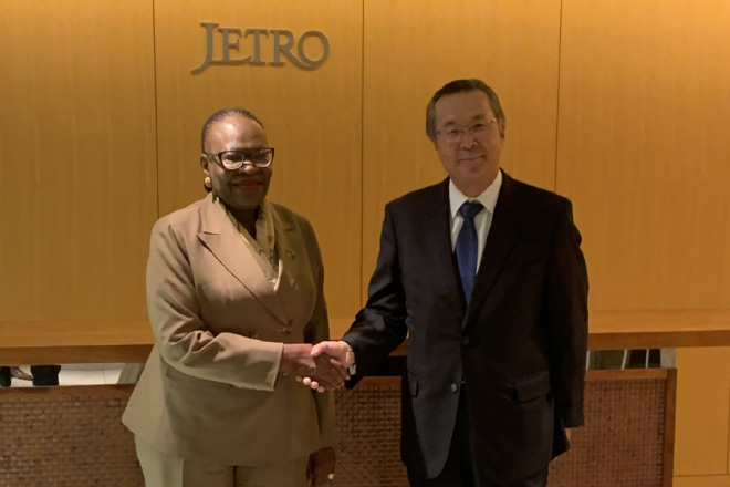 ジェトロの石黒憲彦理事長は1月22日、ナミビア共和国のセルマ・アシパラ=ムサヴィ国際関係・貿易大臣と会談しました。