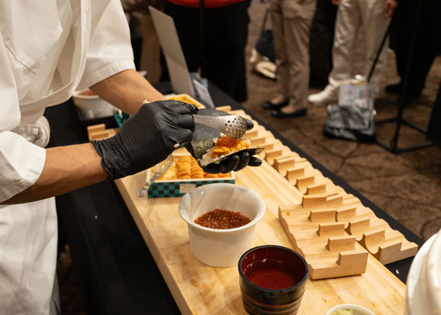 来場者は、縞鯵の刺身、鰤の煮物、帆立のカルパッチョ、雲丹とイクラの手巻き寿司、日本の納豆を使ったチョングッチャン、抹茶味噌ティラミスなど、シェフの技が光る料理を堪能。さらに、中村シェフによるライブパフォーマンスやフォトゾーン、日本の発酵文化の説明パネルなど多彩なコンテンツも用意され、「日本の発酵食品を使った料理をまた食べてみたい」といった声をもらいました。