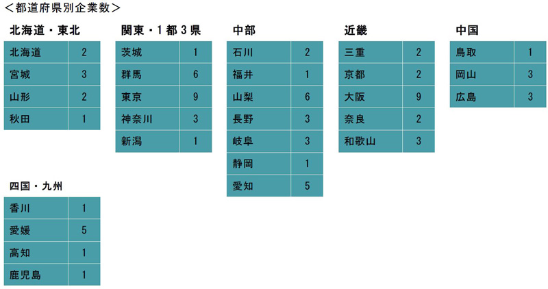 - 経済産業省、茨城県、群馬県、石川県、福井県、長野県、岐阜県、愛知県、三重県、大阪府、 島根県 徳島県、愛媛県、大阪市、堺市、北九州市