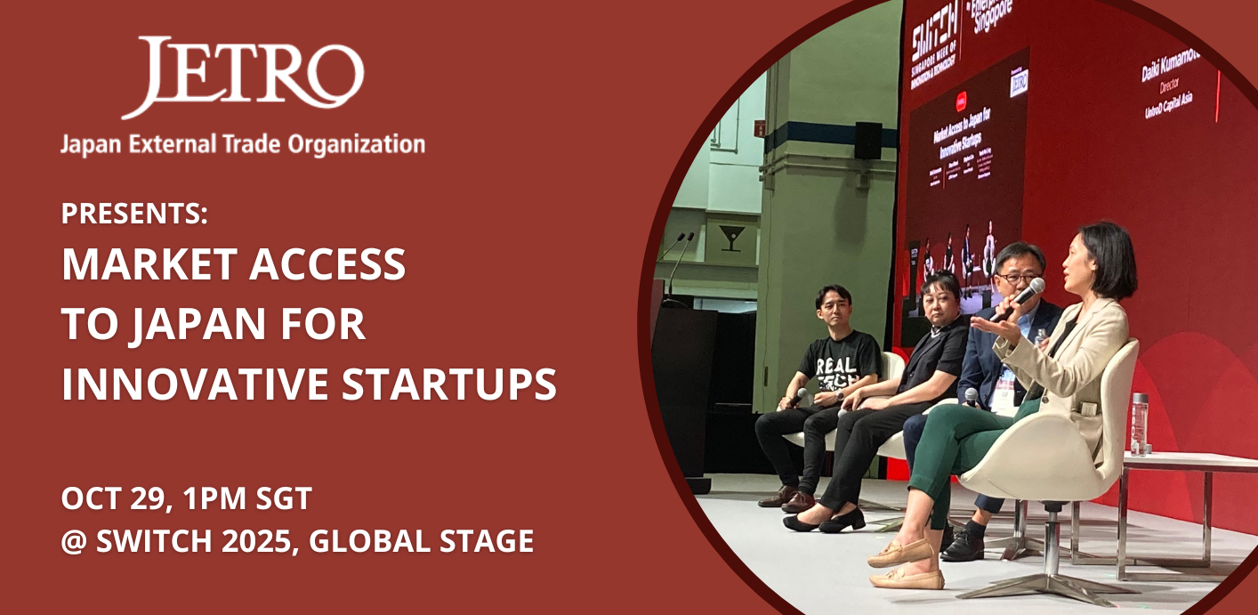 Join us at the Japan Market Access Seminar hosted by JETRO at SWITCH 2025 (Day 1, Global Stage) to gain actionable insights from startup founders, government leaders, and VCs.