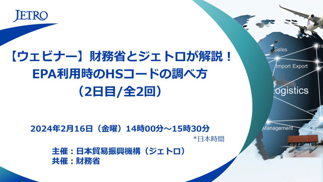 【EPAウェビナー】「財務省とジェトロが解説!EPA利用時のHSコードの調べ方」(全2回)1日目