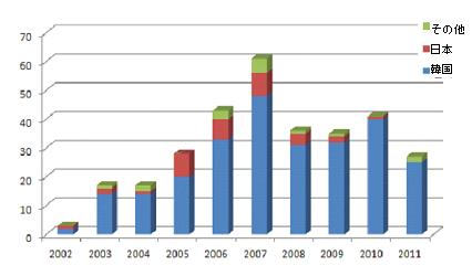 資料1:可変バルブリフト技術の年度別特許出願動向