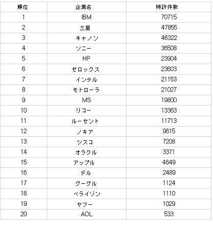 1位はIBMで7万715件を保有しており、これらの特許収入だけで年間10億ドルに達する。IBMは、1990年代初頭から特許が「武器」になることを認識し、米国で専門担当部署を設置した最初の企業だ。昨年だけで6180件の特許を取得した。