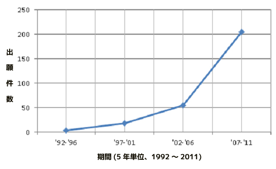 こうした無人航空機の未来市場を先取りするため、関連のオリジナル技術や特許権を確保するための競争が激しさを増しているが、韓国特許庁によると、1992年から2011年まで、無人航空機関連の韓国内の特許出願は、計282件だという。特に、2002年から2006年まで計55件の特許が出願されたが、最近5年(2007年~2010年)間、計205件の特許が出願され、出願増加率は270%を超えた。